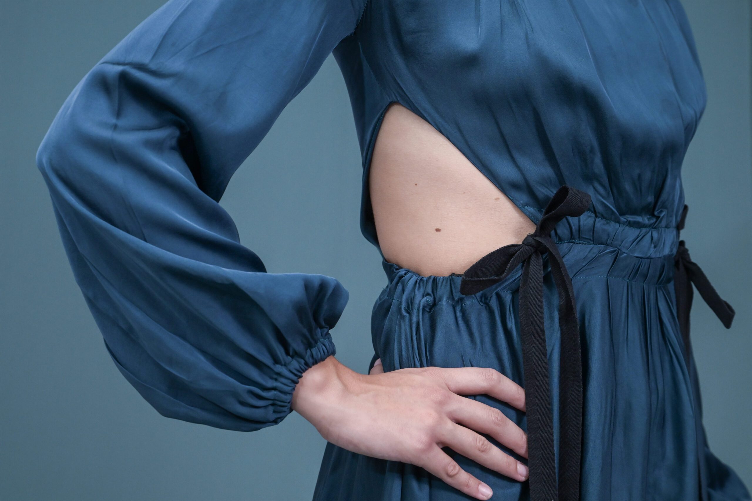 Μετρήστε γύρω από το πληρέστερο μέρος του μπούστου, κρατώντας την ταινία παράλληλη με το πάτωμα. - Μέση (waist) :